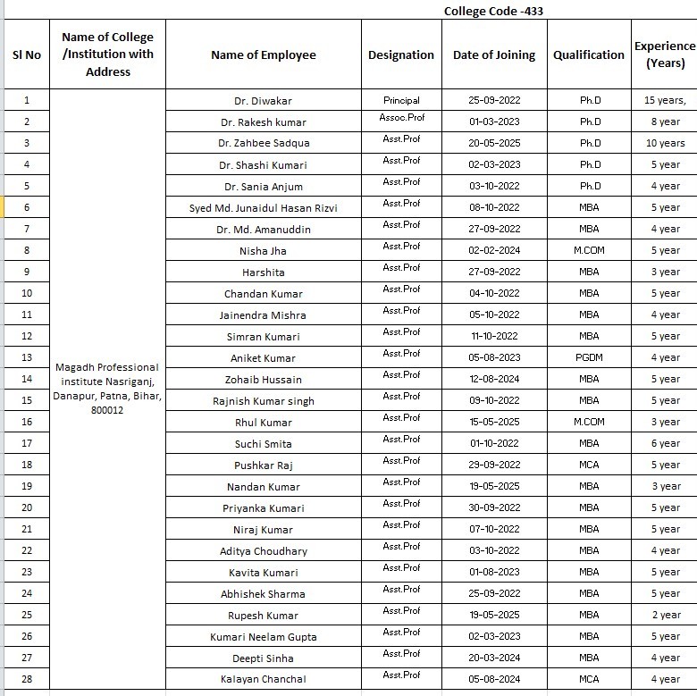 | 1 | Dr. Diwakar | Principal |